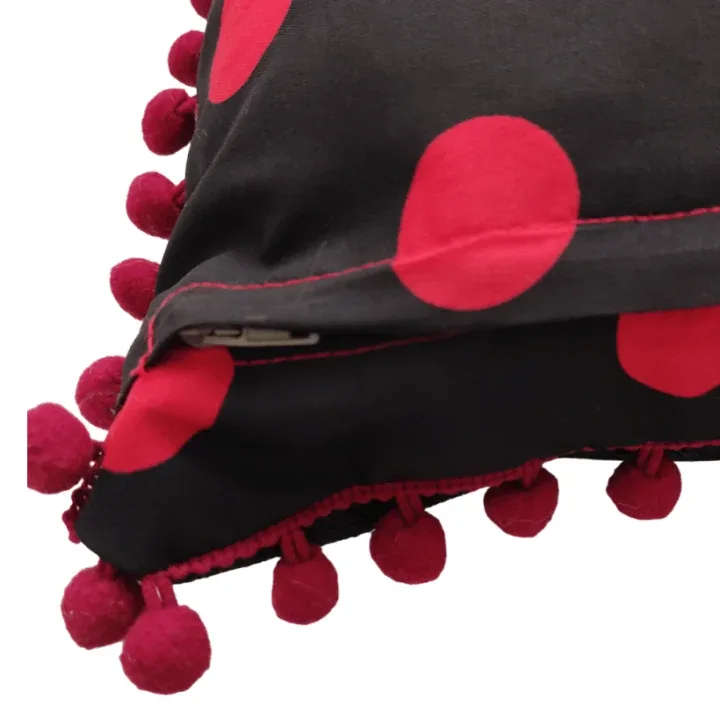 Broken Heart Skull Print Applique Pom-Pom Cushion 40x40cm